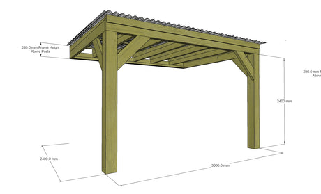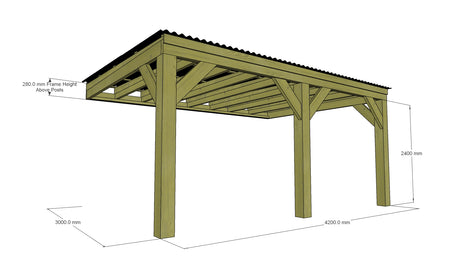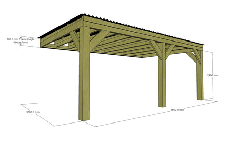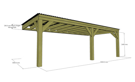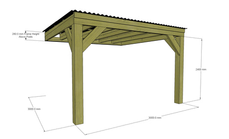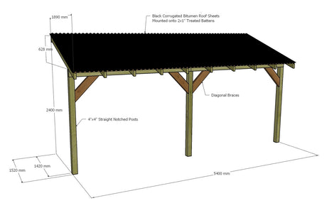 Wooden Lean to Shelter with Black Bitumen Corrugated Roof (3mtr depth, various lengths)