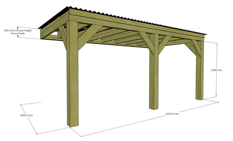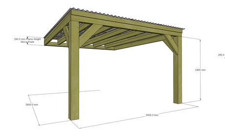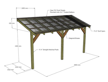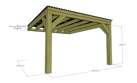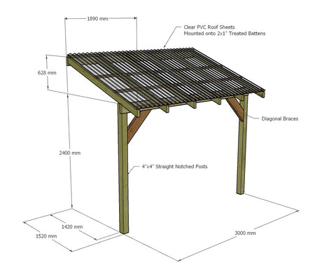 Wooden Lean to Shelter with Clear Corrugated Roof (3mtr depth, various lengths)