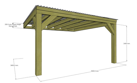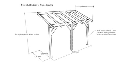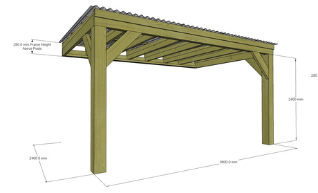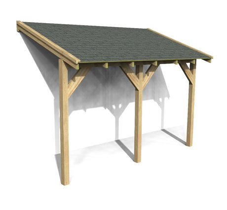 3.6m x 1.52m Wooden Lean to Canopy - Gazebo, Veranda - Frame with Ply & Felt Shingle Roof Kit