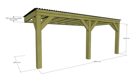 4.8m x 1.52m Wooden Lean to Canopy - Gazebo, Veranda - Frame with Ply & Felt Shingle Roof Kit