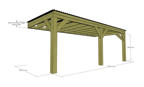 2.4m x 1.52m Wooden Lean to Canopy - Gazebo, Veranda - Frame Only Kit