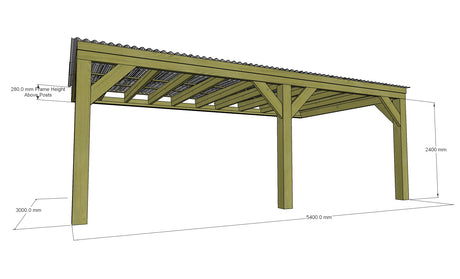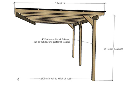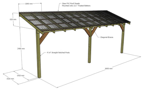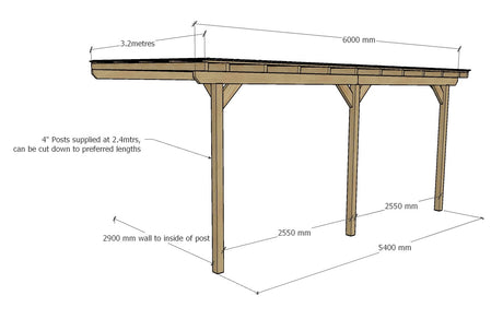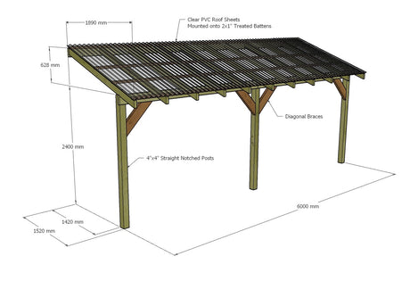 6m x 3m Wooden Lean to Pergola Carport Kit