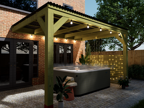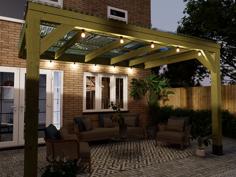 Wooden Lean to Gazebo with Clear Corrugated Roof | Brampton Clear