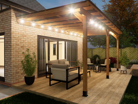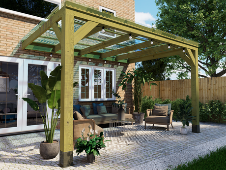 Chunky Wooden Lean to Box Pergola with Clear Roof | Wychwood Clear