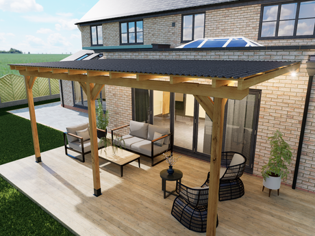 Chunky Wooden Lean to Box Pergola with Black Roof | Wychwood Black