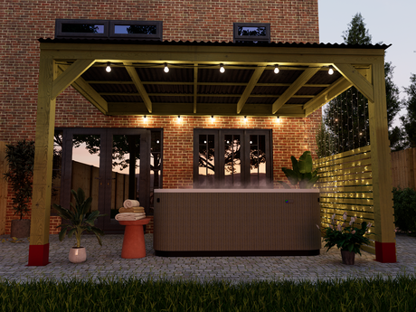 Wooden Lean to Gazebo with Black Corrugated Roof | Brampton Black